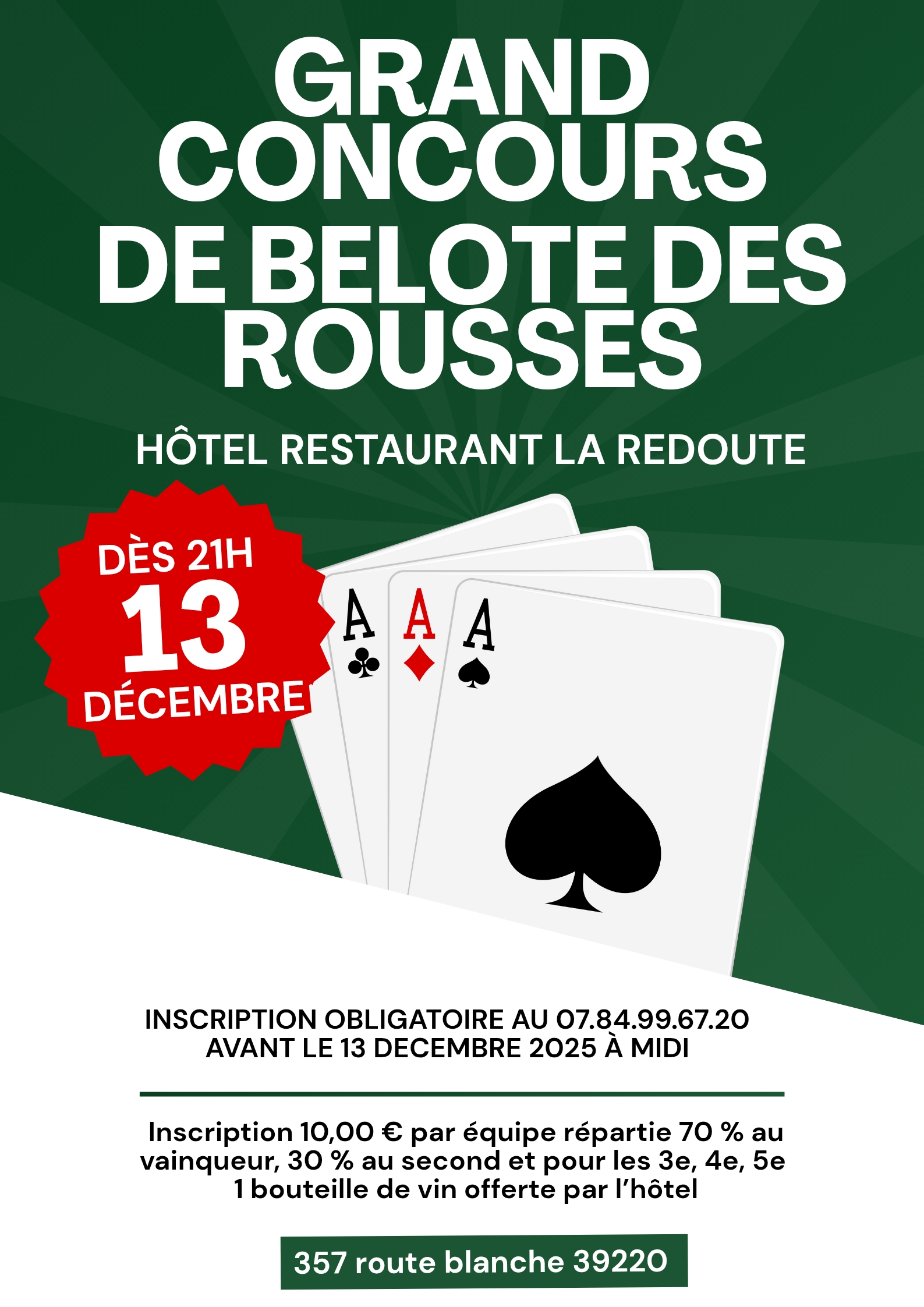 Notre hôtel est situé au cœur du village des Rousses à seulement quelques kilomètres de Morez (capitale de la lunette), de la frontière Suisse et des industries de la ville du Brassus, notre hôtel est situé à 40 km de Genève et à 60km de Lausanne et de ses musées (collection de l'art brut, musée des beaux arts, fondation de l'hermitage), à 35km des cascades du Hérisson et 45 km de Baume Les Messieurs.